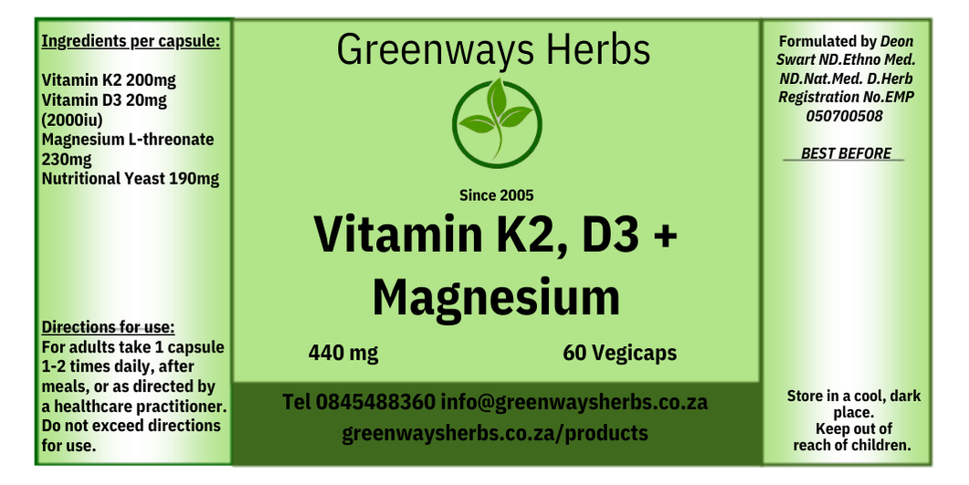 Vitamin K2, D3 & Magnesium 60 Capsules